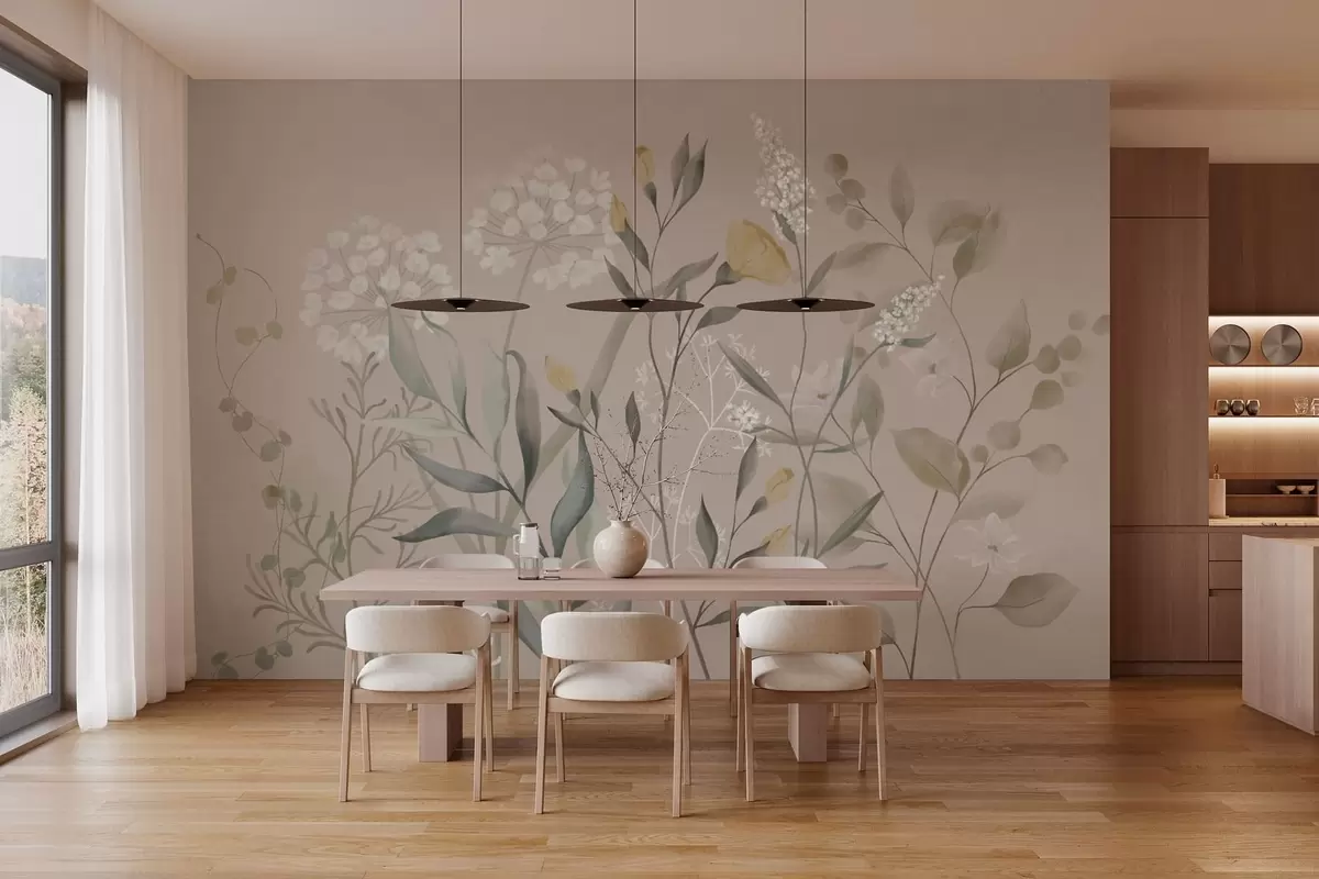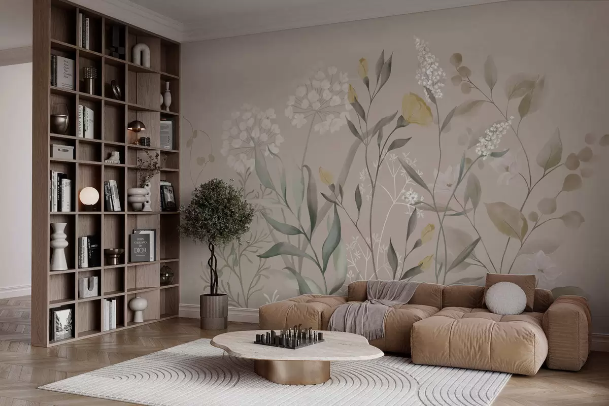 Fototapet Botanisk komposition i varme beige nuancer Nr. w05154v2