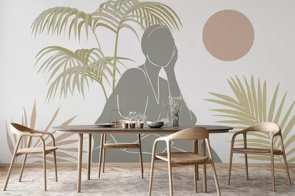 Fototapet Silhuet af en kvinde og palmeblade Nr. w05190
