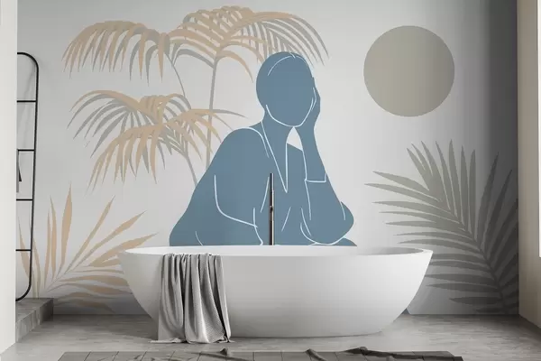 Fototapet Silhuet af en kvinde og palmeblade Nr. w05190v1