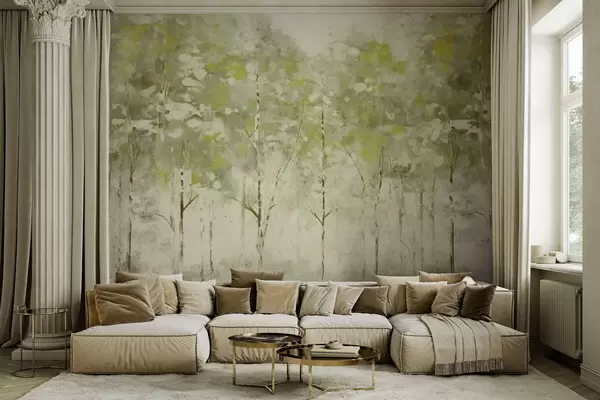 Fototapet Stiliseret skov med slanke træer i grønne nuancer Nr. w05221v1