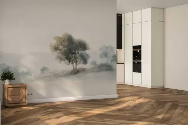 Fototapet Roligt landskab med et træ og bløde, slørede former Nr. w05223v1