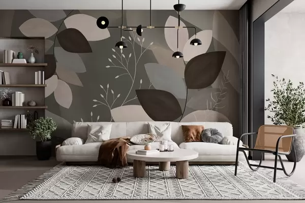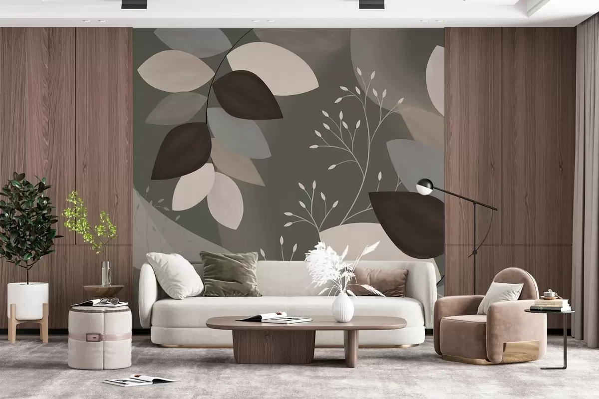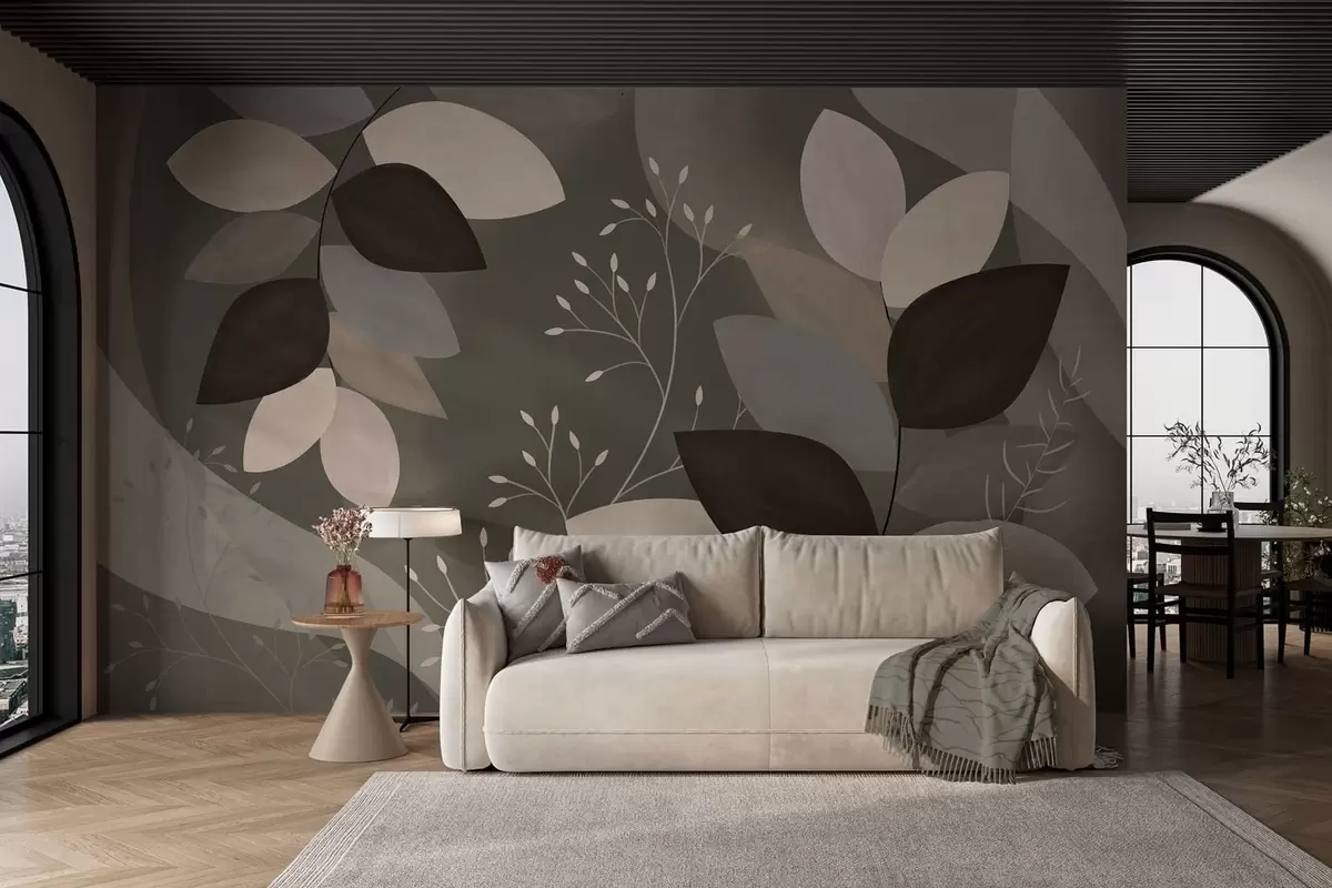 Fototapet blade og græs i mørke nuancer Nr. w05237v1