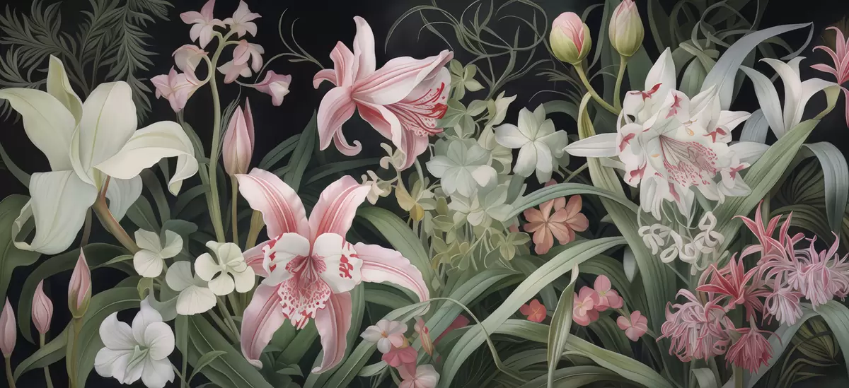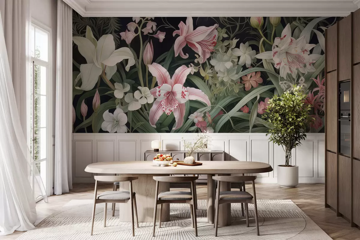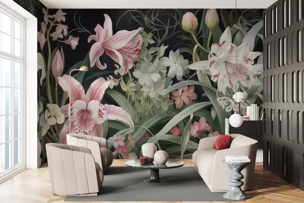 Fototapet Fantastiske blomster på mørk baggrund Nr. w05278