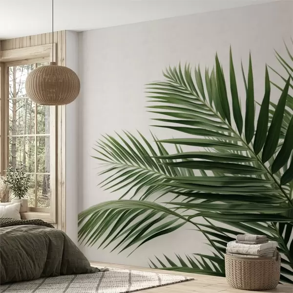 Fototapet Grønne palmeblade på en lys baggrund Nr. w05391