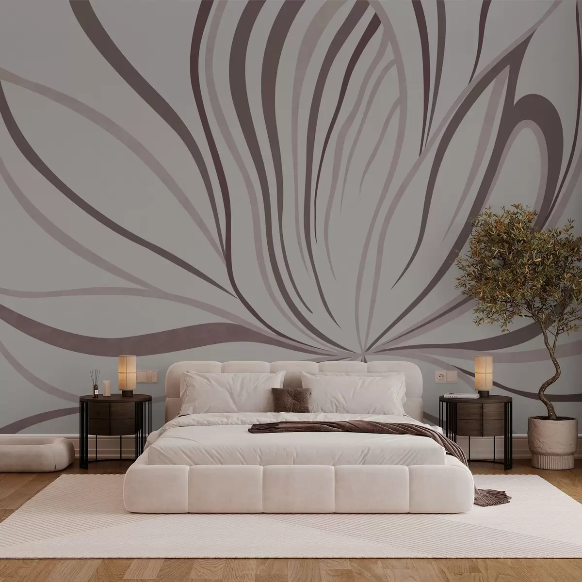 Fototapet Stiliseret blomst med bløde linjer i lyserøde og beige nuancer Nr. w05392v1