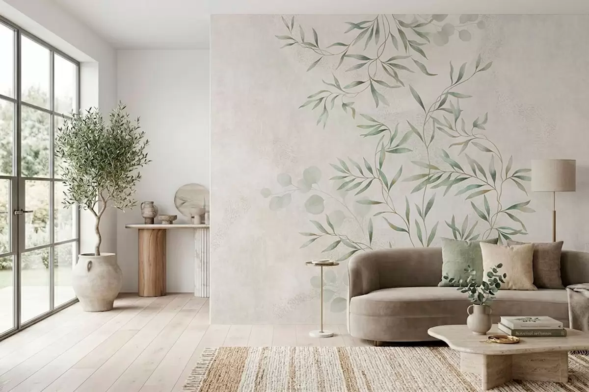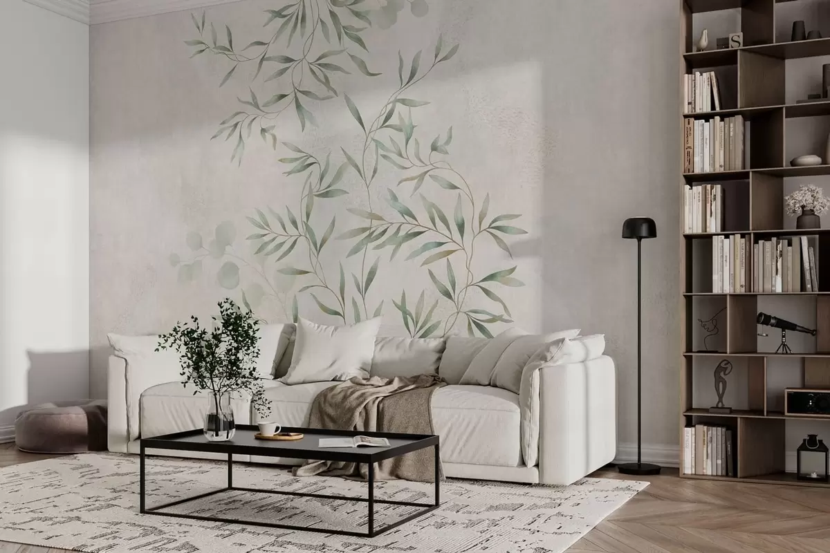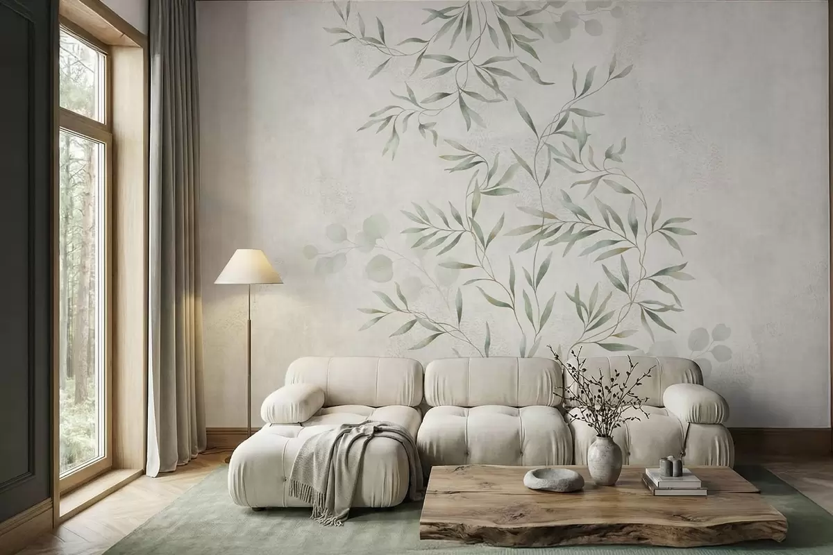 Fototapet Et fint botanisk mønster med tynde grene på lys baggrund Nr. w05424