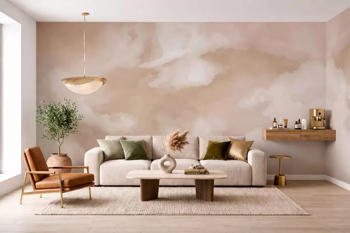 Fototapet Blød, skyet baggrund i varme beige nuancer Nr. w05426