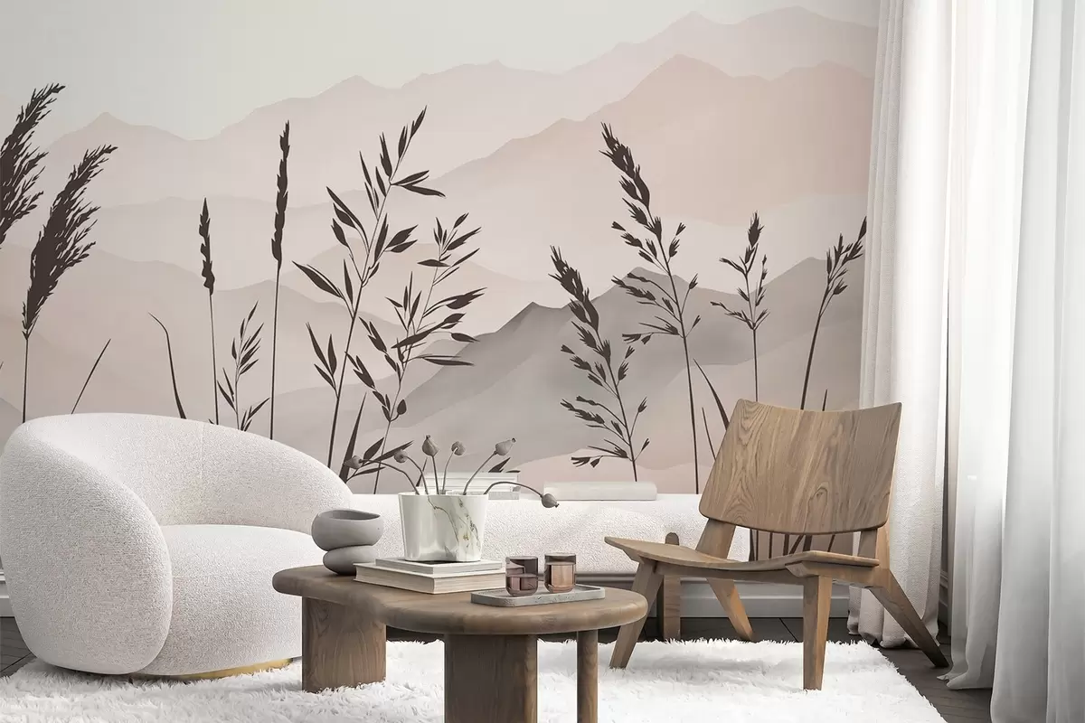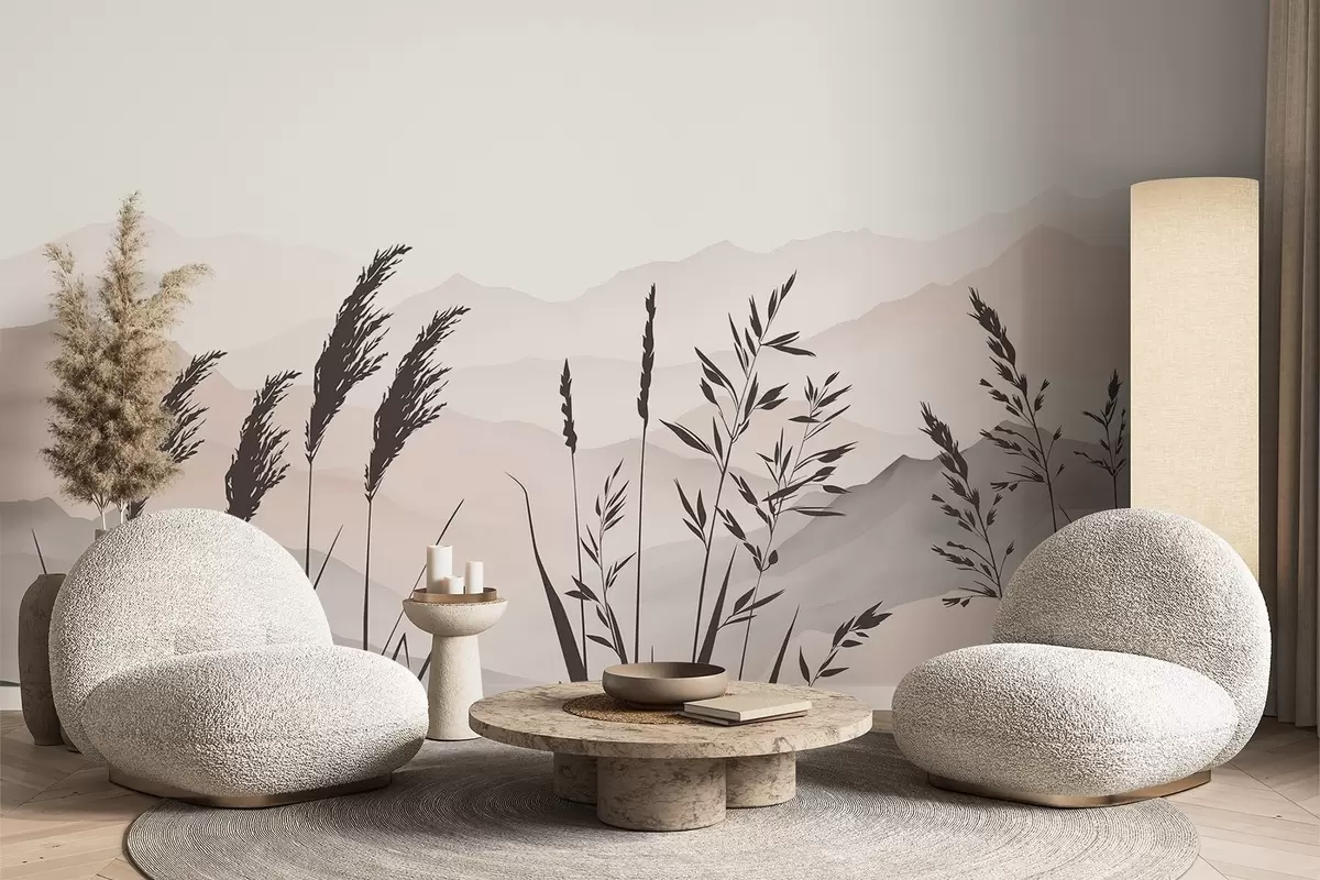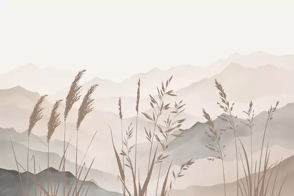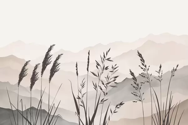 Fototapet Græssets silhuetter med bjergene i baggrunden Nr. w05501