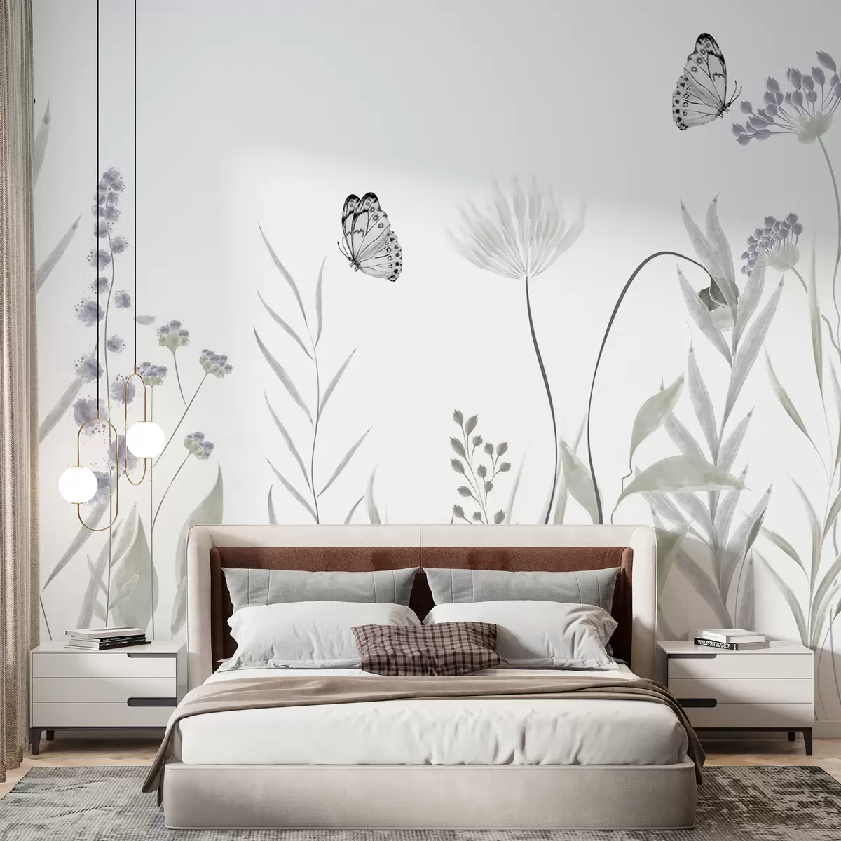 Fototapet Vilde blomster og sommerfugle Nr. w08052