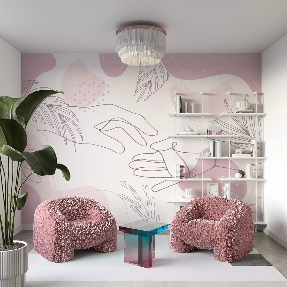Fototapet Vektor, lineære hænder, pletter, pink farve Nr. w08353v1
