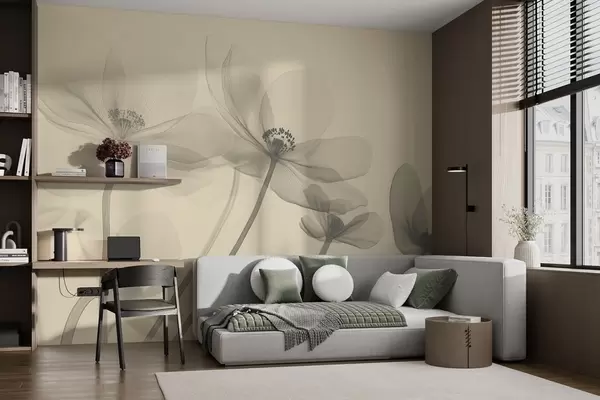 Fototapet Luftige vilde blomster i en beige tone Nr. w08490