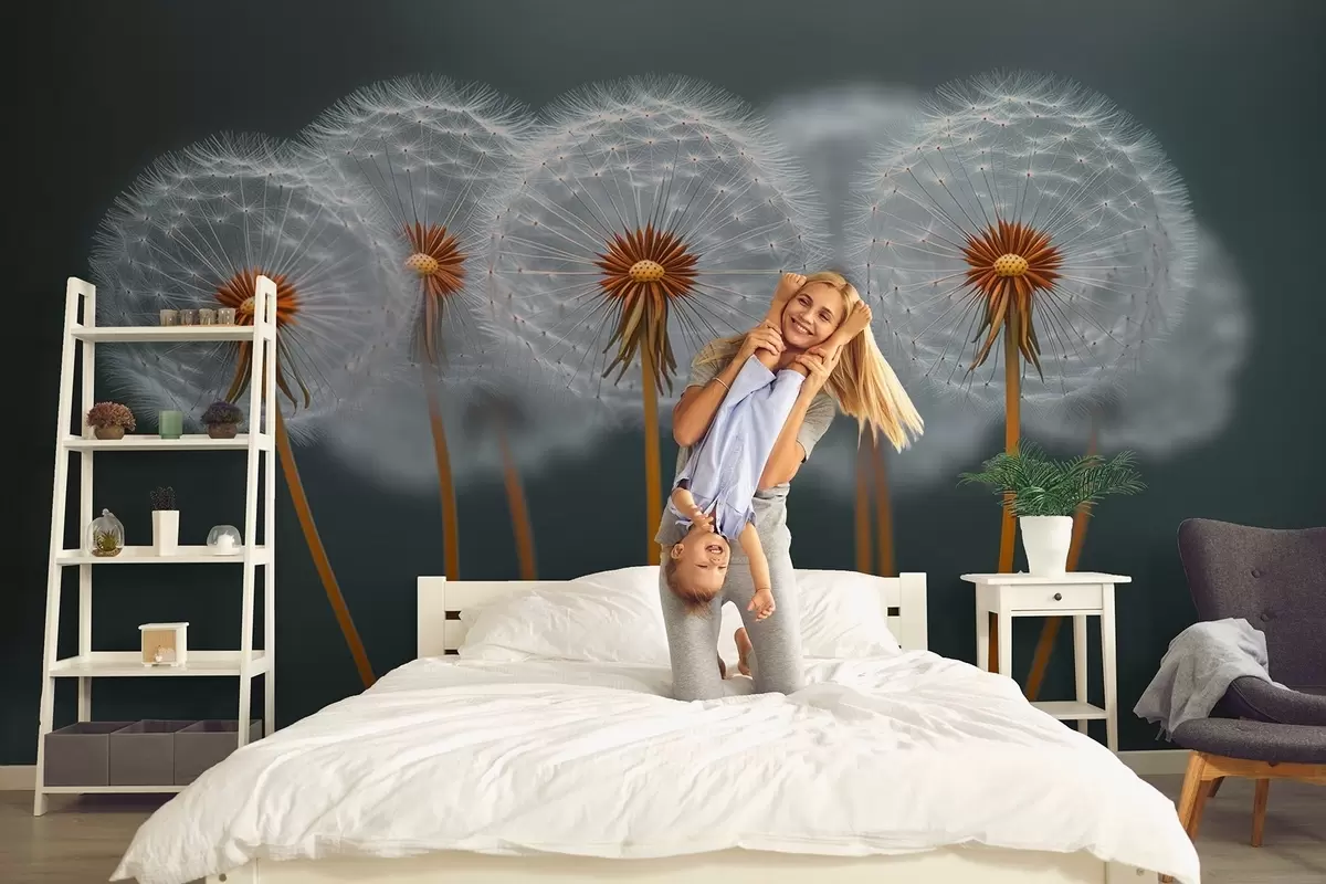 Fototapet Luftige mælkebøtter mod en mørk, naturlig baggrund Nr. w08498