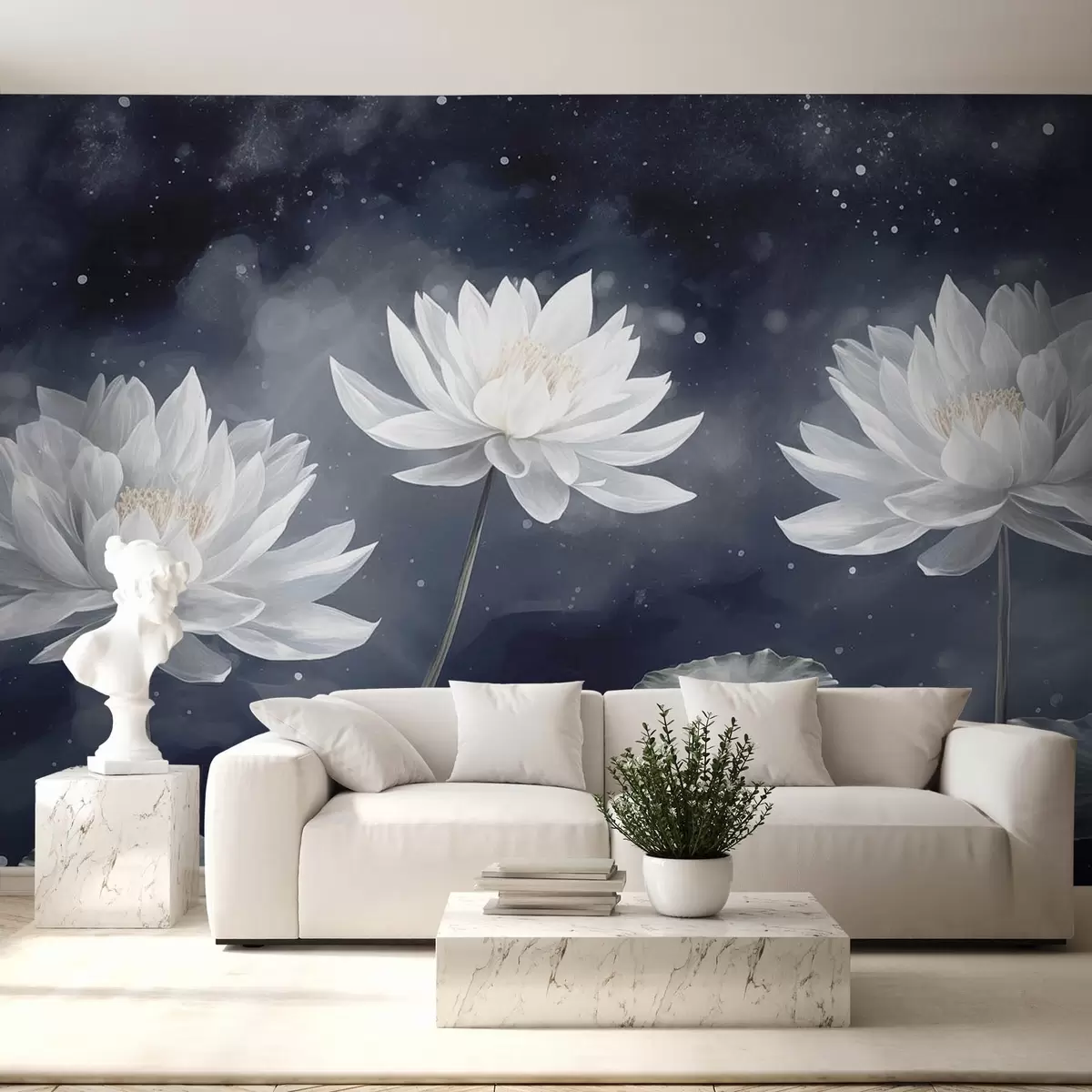 Fototapet Tre lotusblomster på en mørk baggrund Nr. w08506
