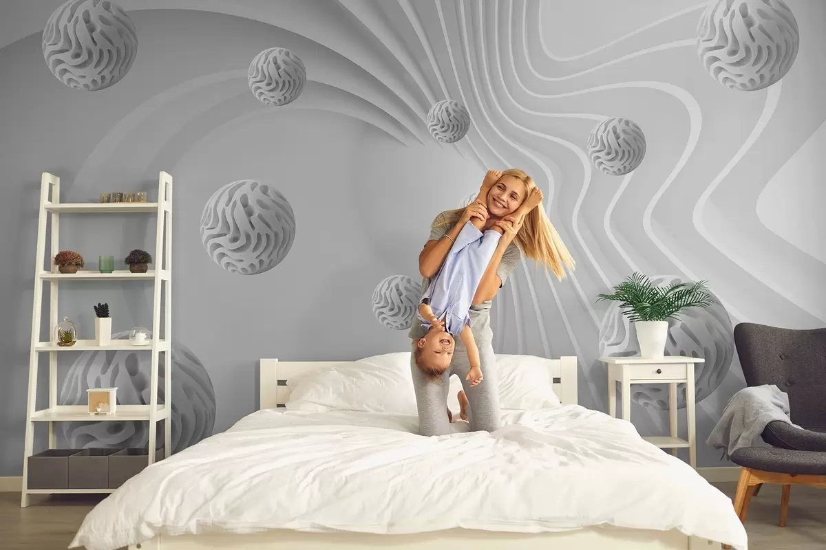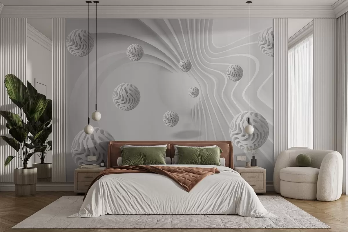 Fototapet grå 3D-abstraktion med kugler og dybdeeffekt Nr. w08553