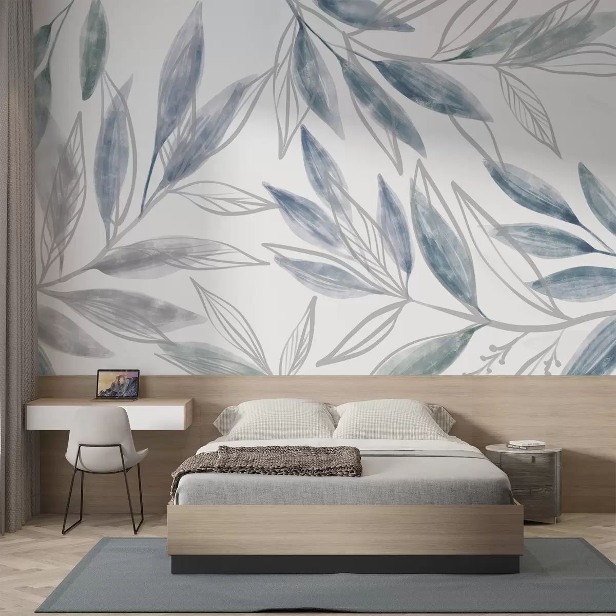 Fototapet Delikate blå og grå teksturerede pastelblade, der skaber en rolig og minimalistisk botanisk komposition Nr. w08642v1