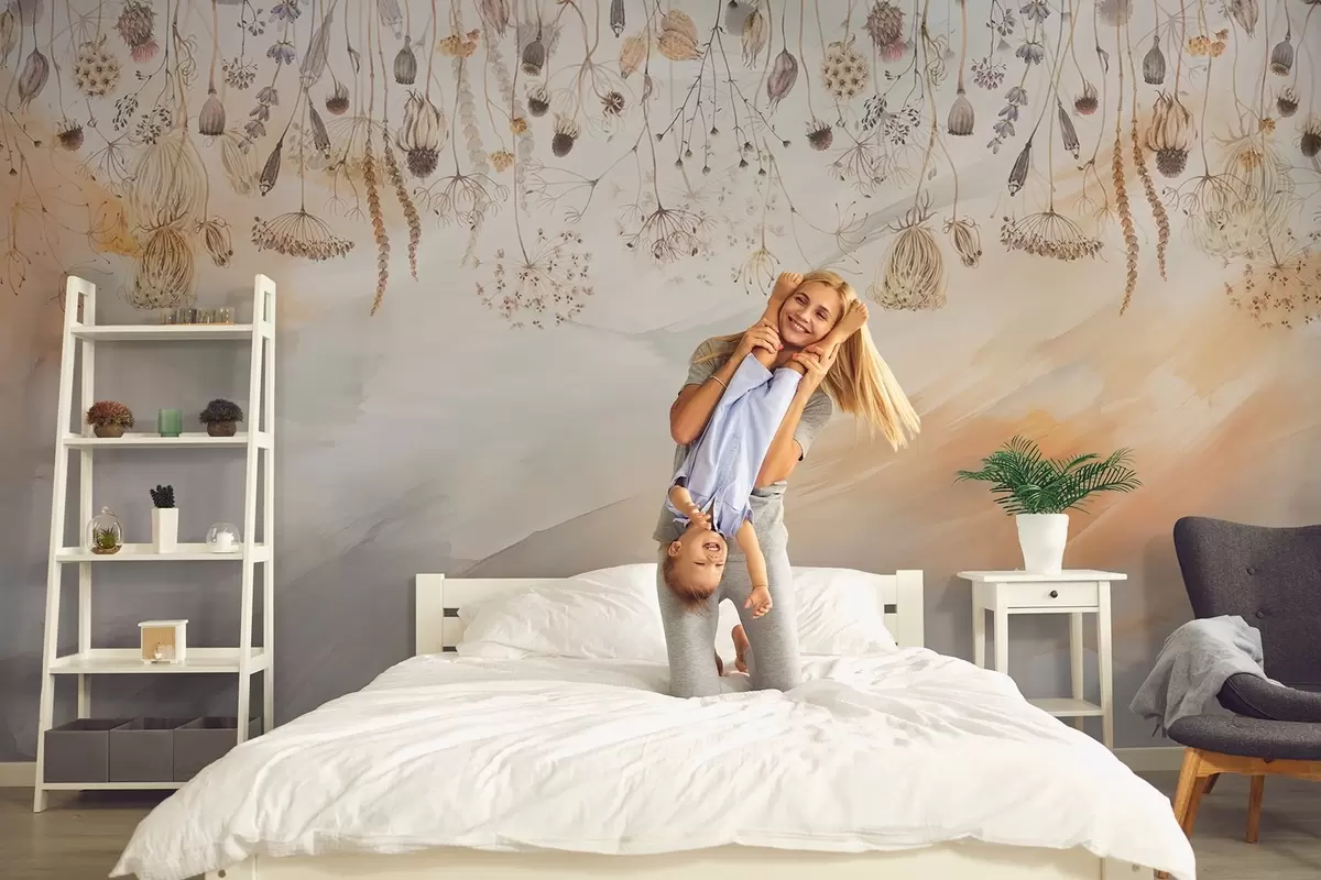 Fototapet Vilde blomster i akvarelstil i pastelfarver på en baggrund af penselstrøg Nr. w08681