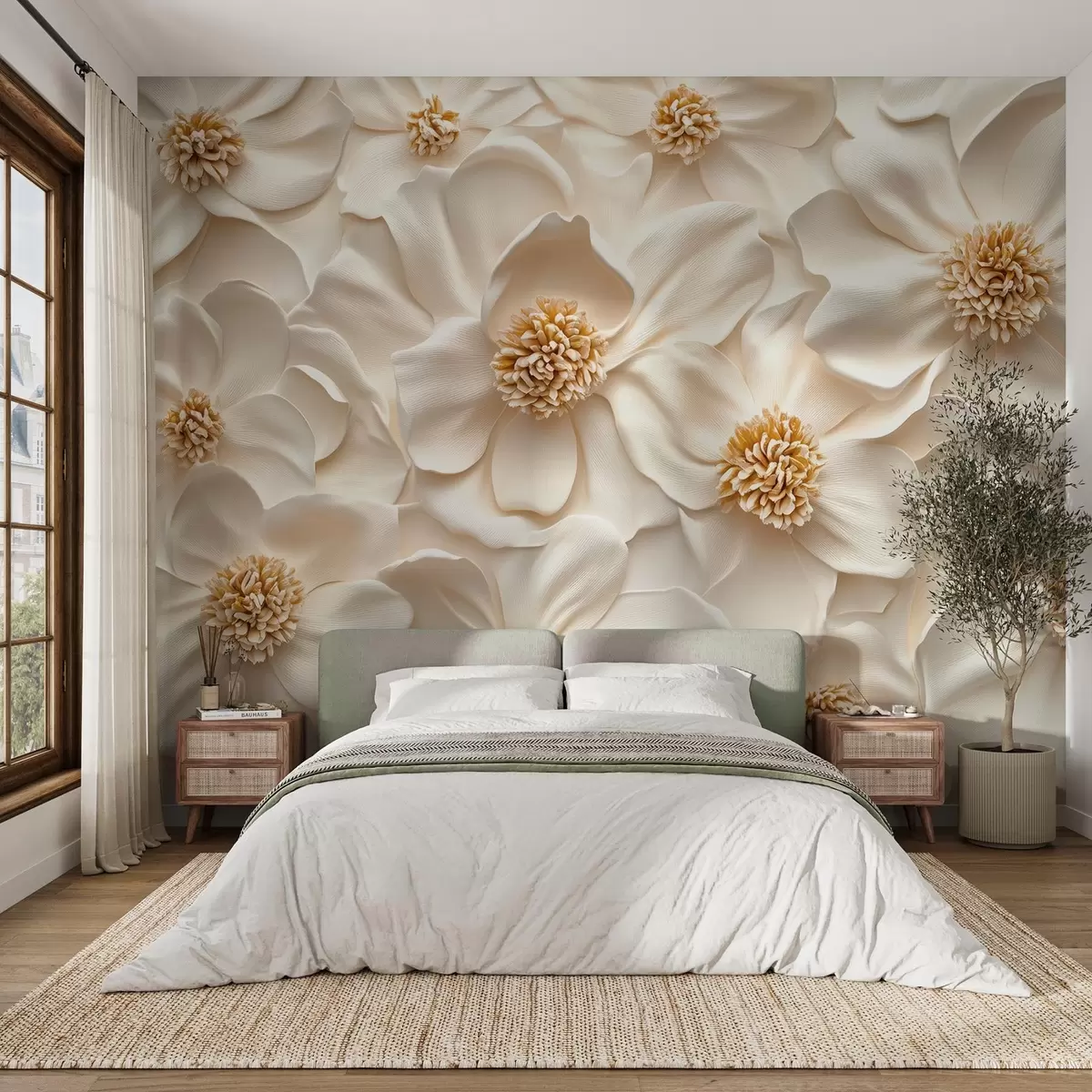 Fototapet 3D-beige blomsterkomposition med gule accenter Nr. w08691