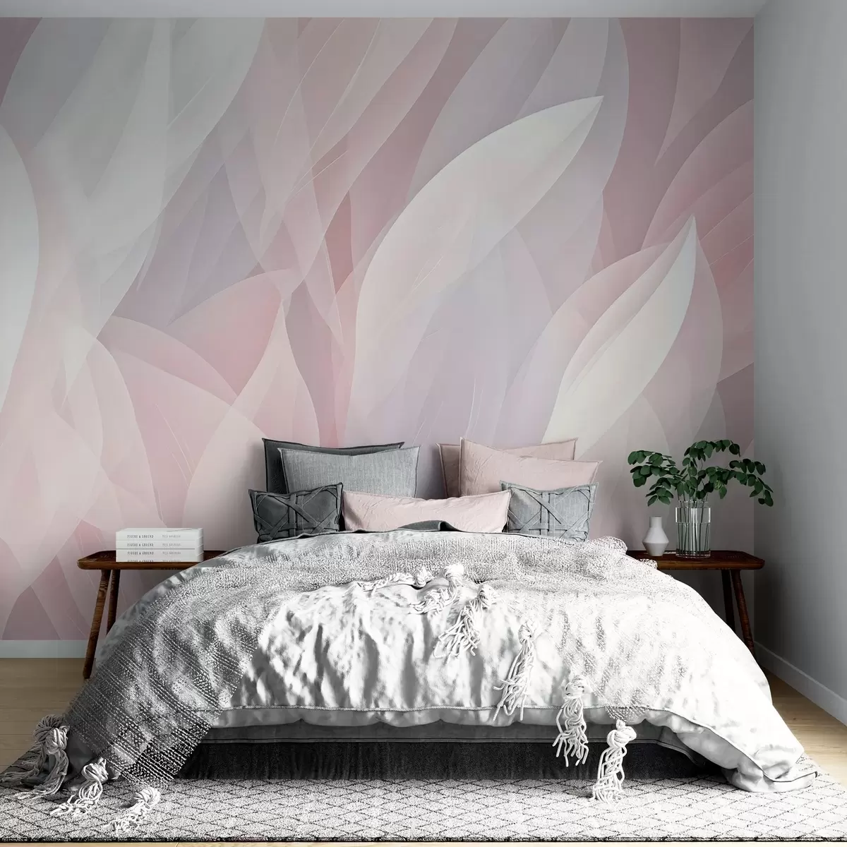 Fototapet Abstrakt design med bløde kronbladslignende former i rosa og hvide nuancer, der skaber en lagdelt effekt Nr. w08774