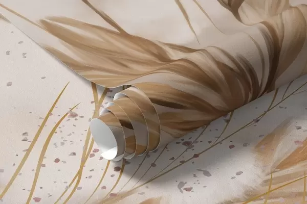 Fototapet Bløde, fluffy bomuldshvide blomster og høje orange græsstrå mod en dæmpet struktureret beige baggrund Nr. w08784