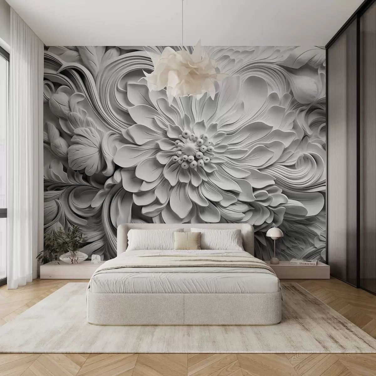 Fototapet Imitation af støbning, store blomster Nr. w08790