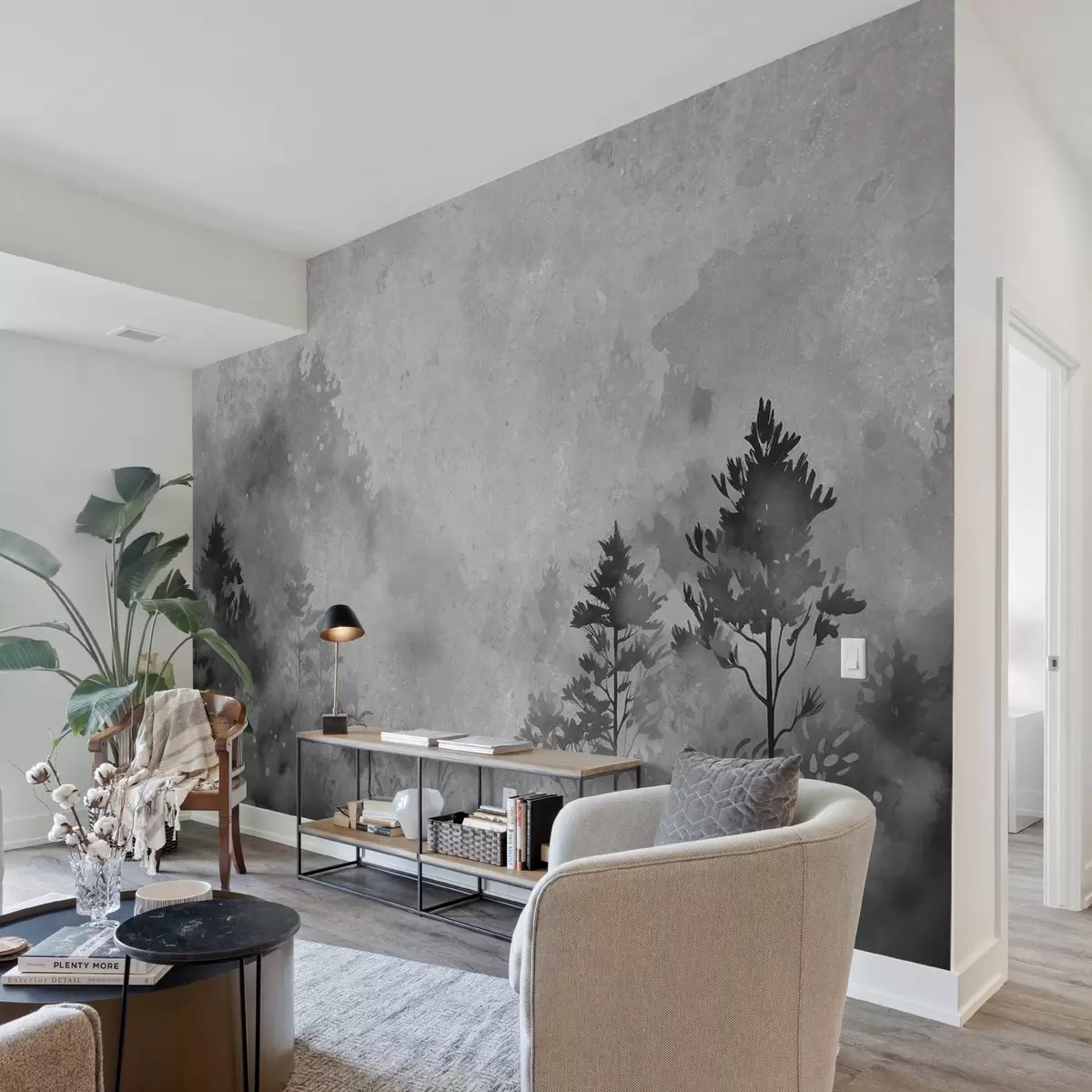 Fototapet Skov, imiteret akvarel i sort-hvid stil Nr. w08862v1