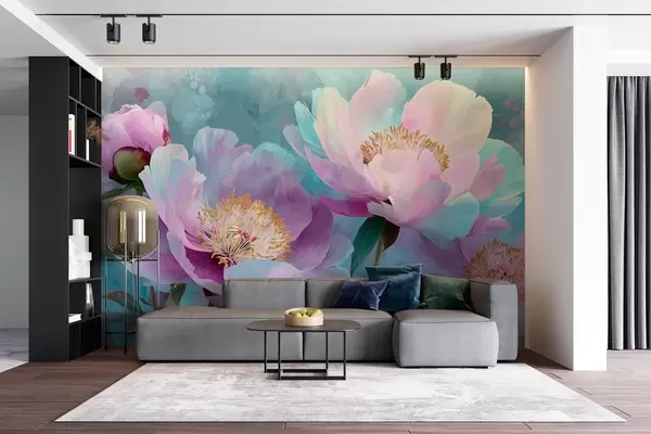 Fototapet Farverige pæoner i blå og lilla nuancer Nr. w09087