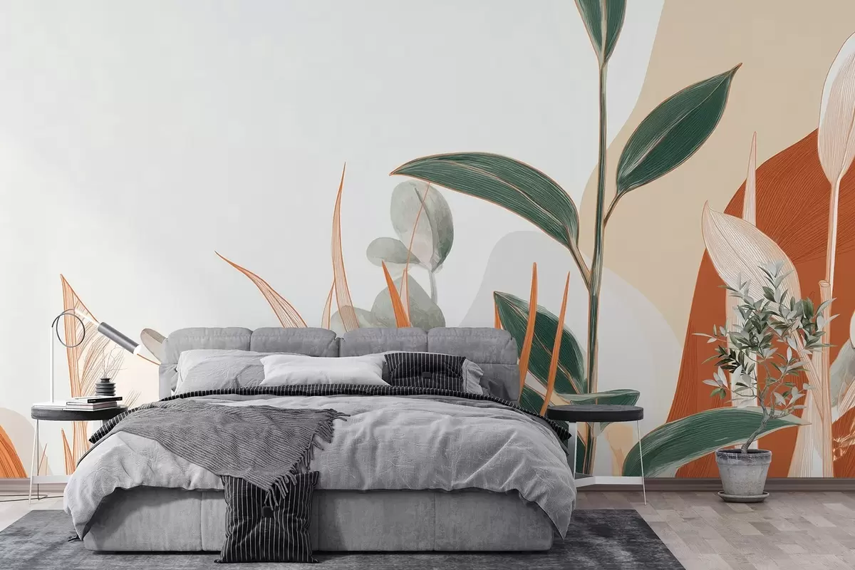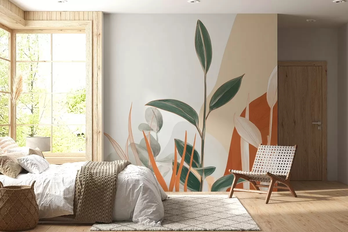 Fototapet Blade i beige og grønne toner Nr. w09101