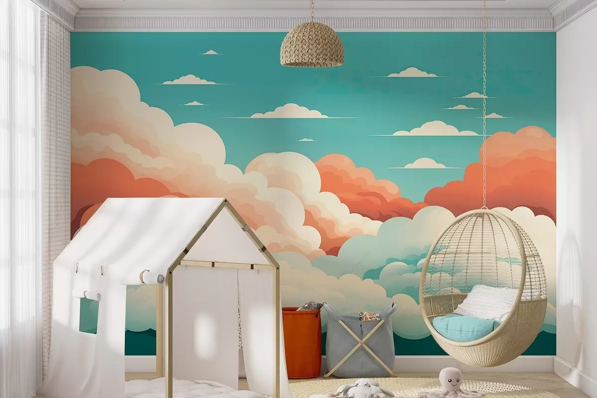 Fototapet Finurlige skyer i tegneseriestil under en blå himmel Nr. w09246