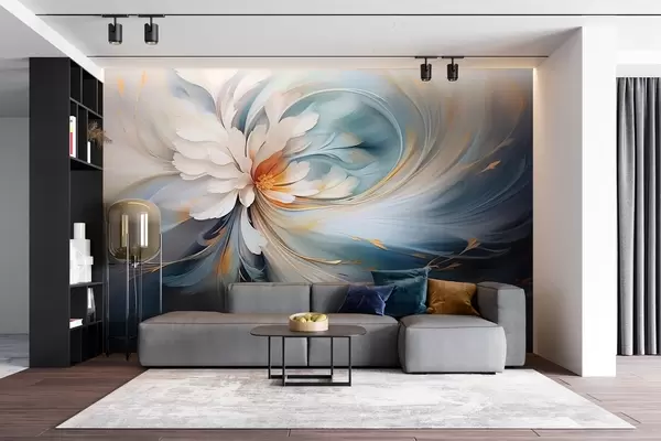 Fototapet Abstrakt blomst i blå og orange toner Nr. w09270v1