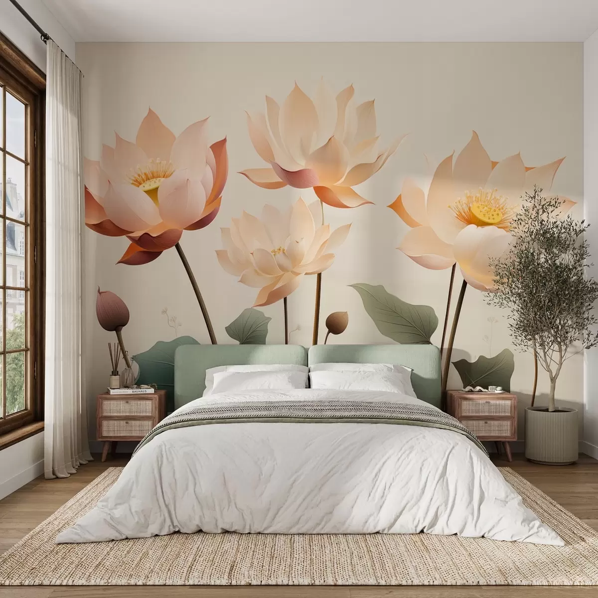 Fototapet Elegante lotusblomster i en blid pastelpalet Nr. w09306