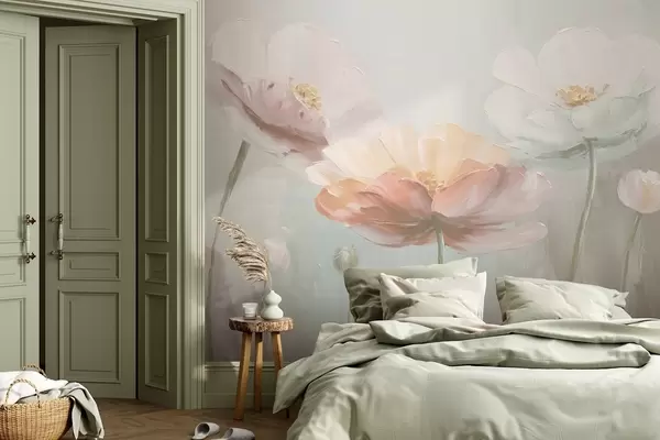 Fototapet Volumetriske pastelvalmuer i oliemaleristil Nr. w09310v1