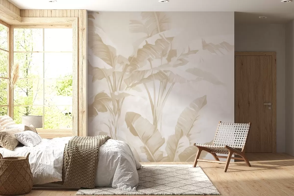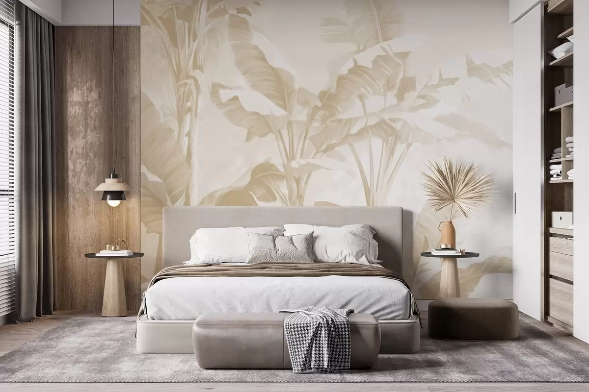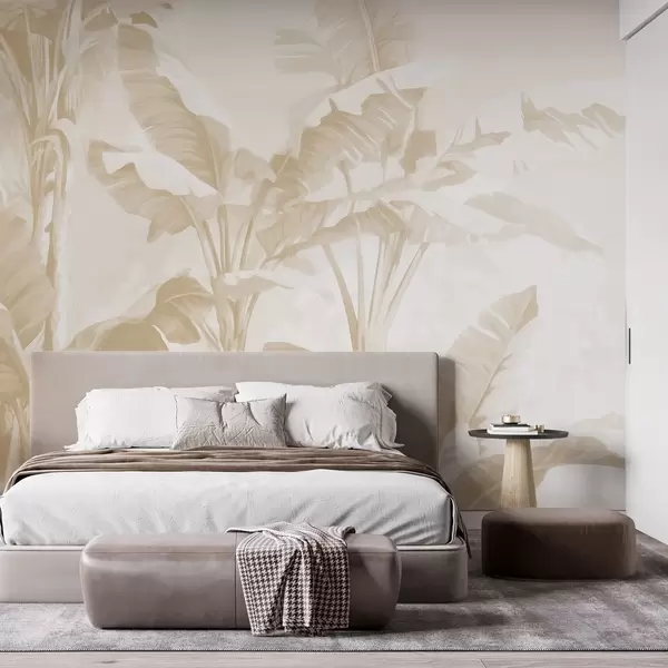 Fototapet Tropiske bananblade i bløde beige nuancer Nr. w09311v2