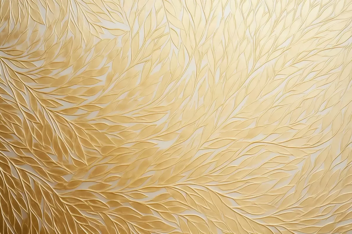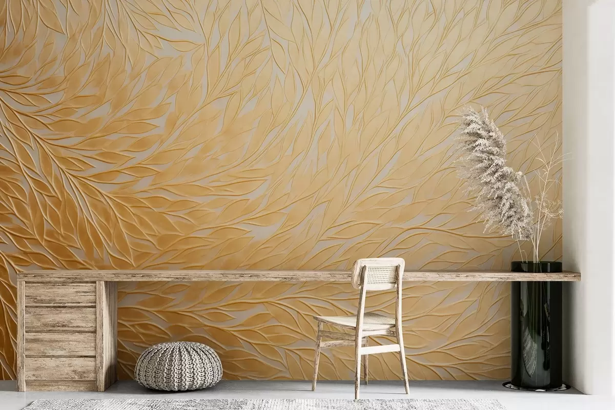 fototapeter Præget bladmønster i varme honninggule toner w09325