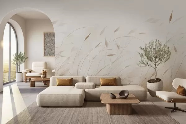 Fototapet Græs i vinden i akvarelstil i beige nuancer Nr. w09331v1
