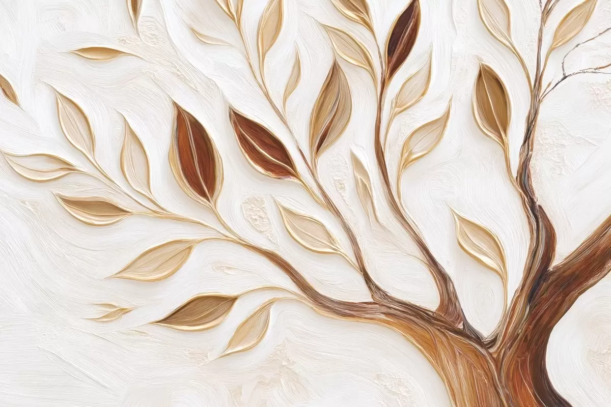 Fototapet Dekorativt træ med blade og efterligning af en struktureret baggrund Nr. w09349