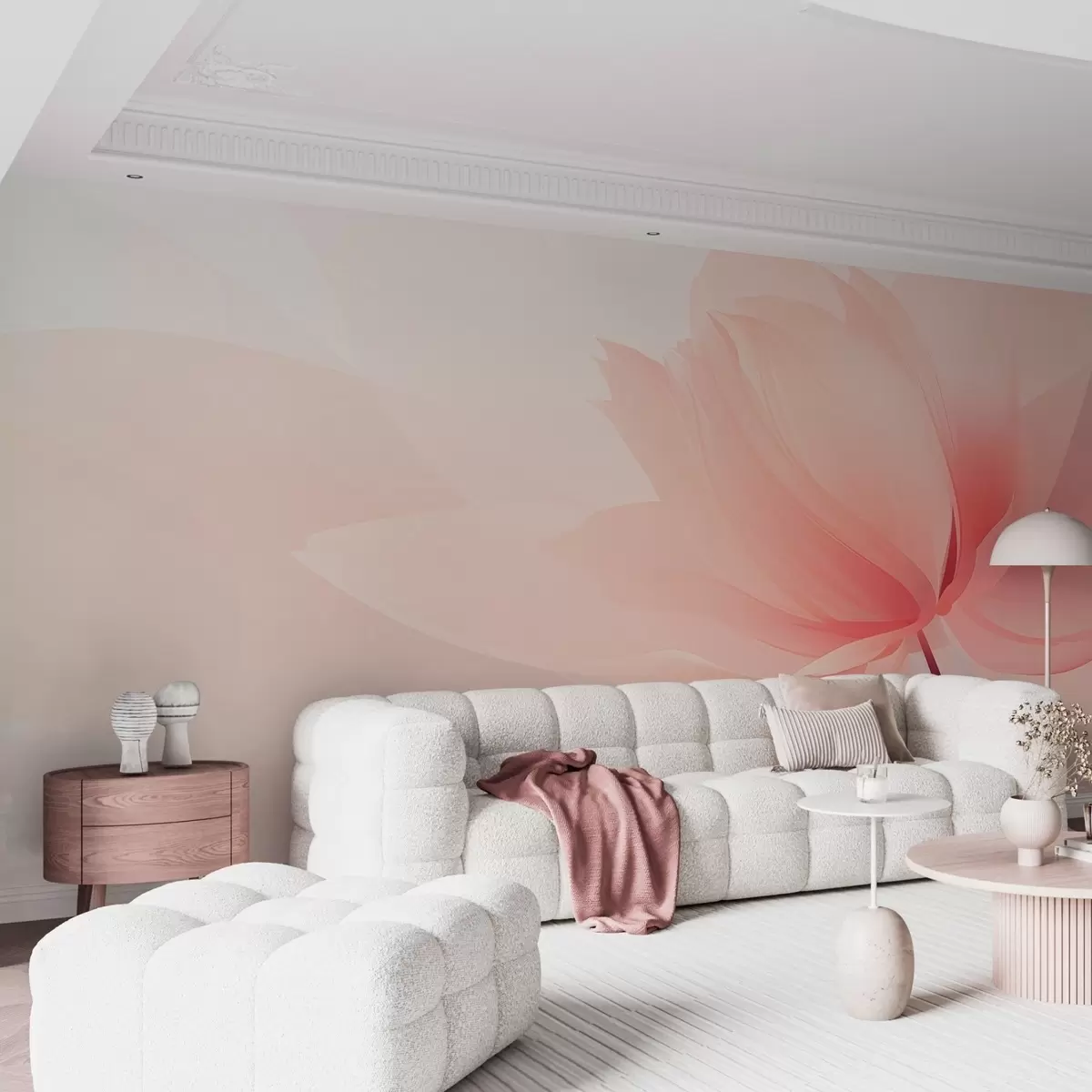 Fototapet Stor blomst i bløde ferskenrosa nuancer Nr. w09356