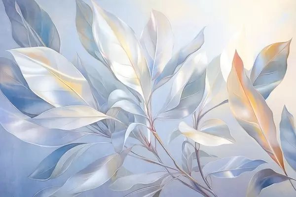 Fototapet Magnoliablade med hvide og blå toner, blød belysning, elegant komposition, detaljerede bladnerver, kunstneriske penselstrøg Nr. w09385