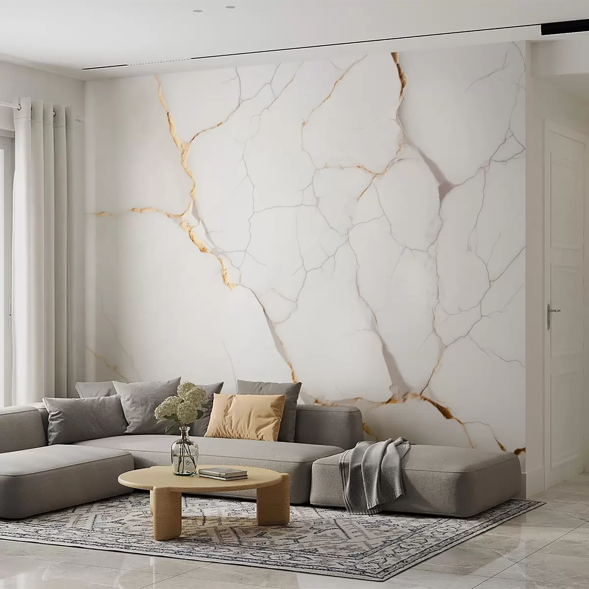 Fototapet Imitation af marmor med fine revner og gule årer Nr. w09390