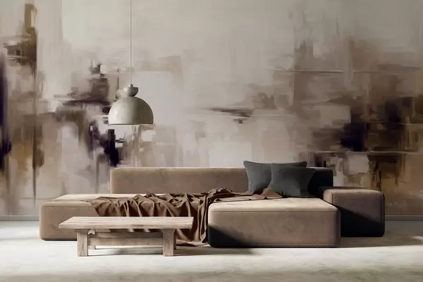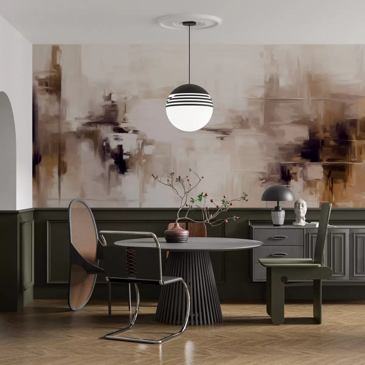 Fototapet Abstrakt tekstureret landskabsmaleri-imitation med brune og hvide penselstrøg, moderne stil Nr. w09422v1