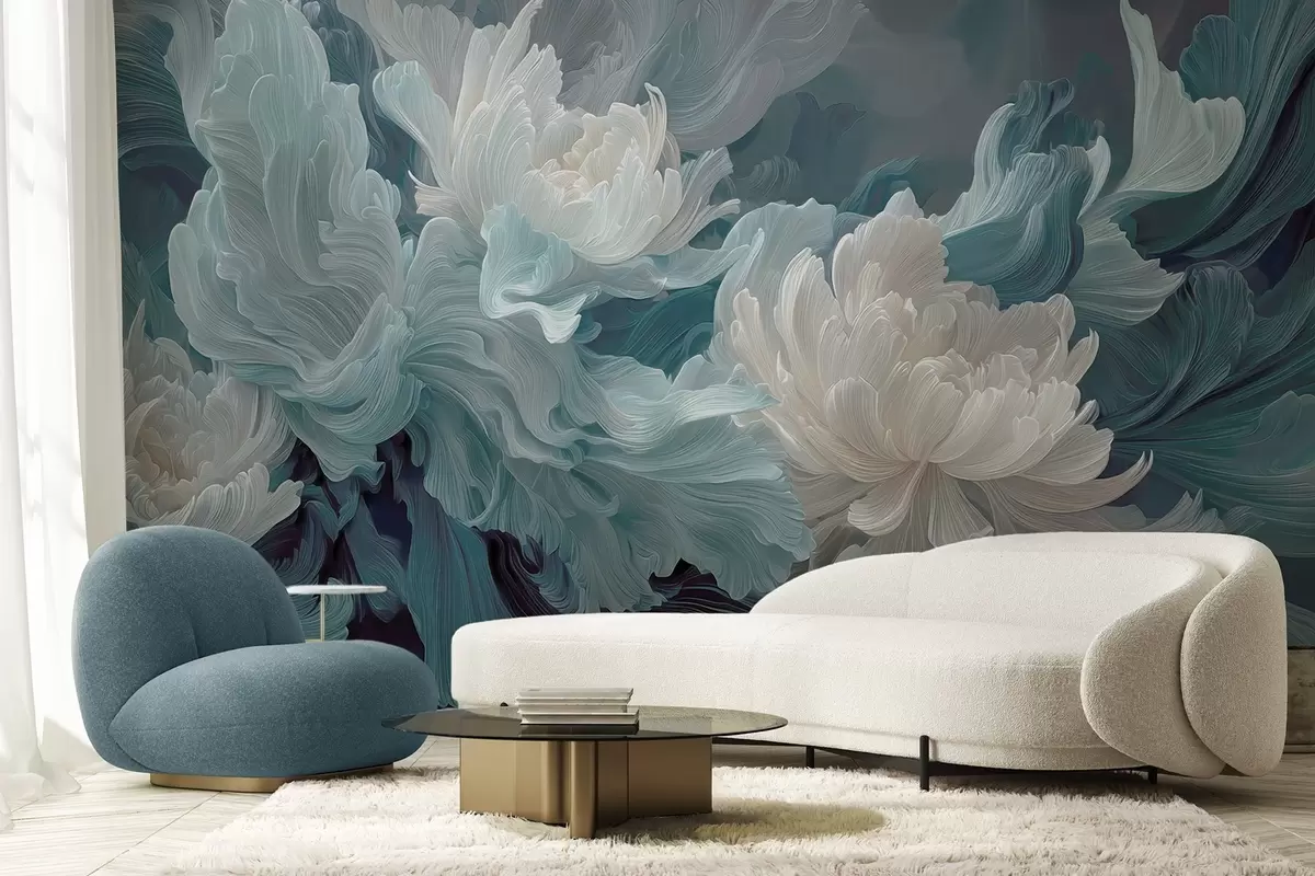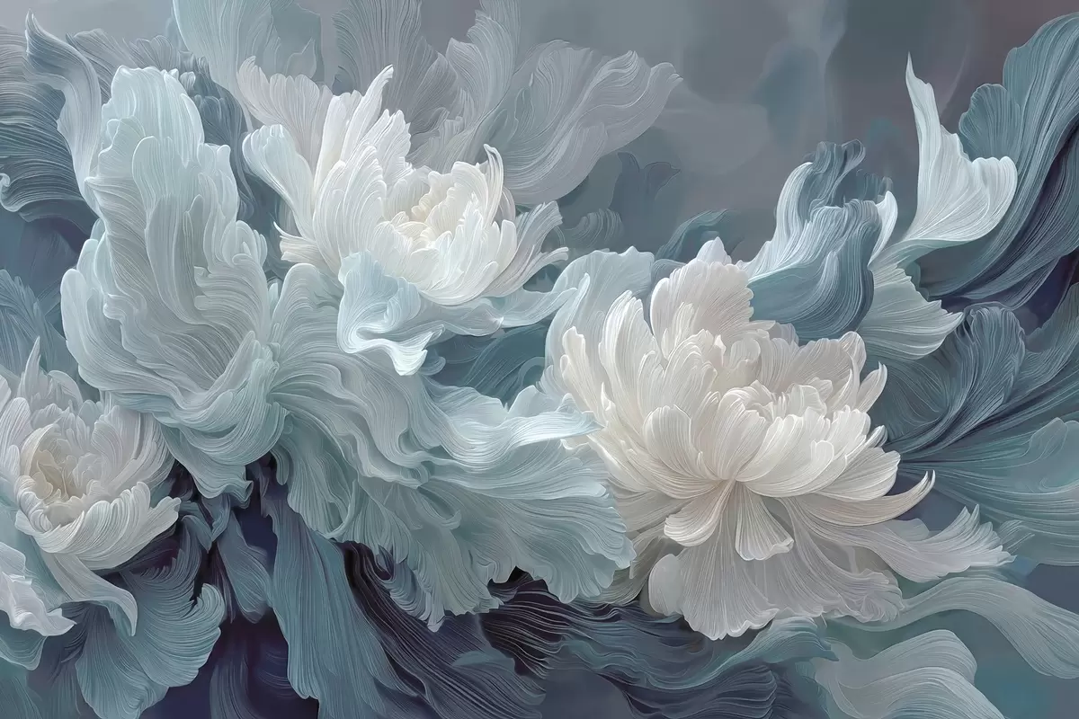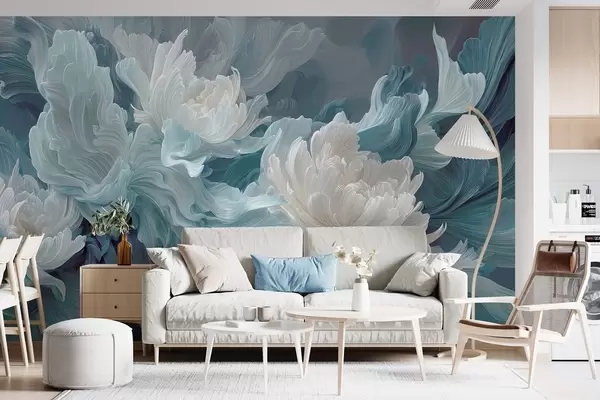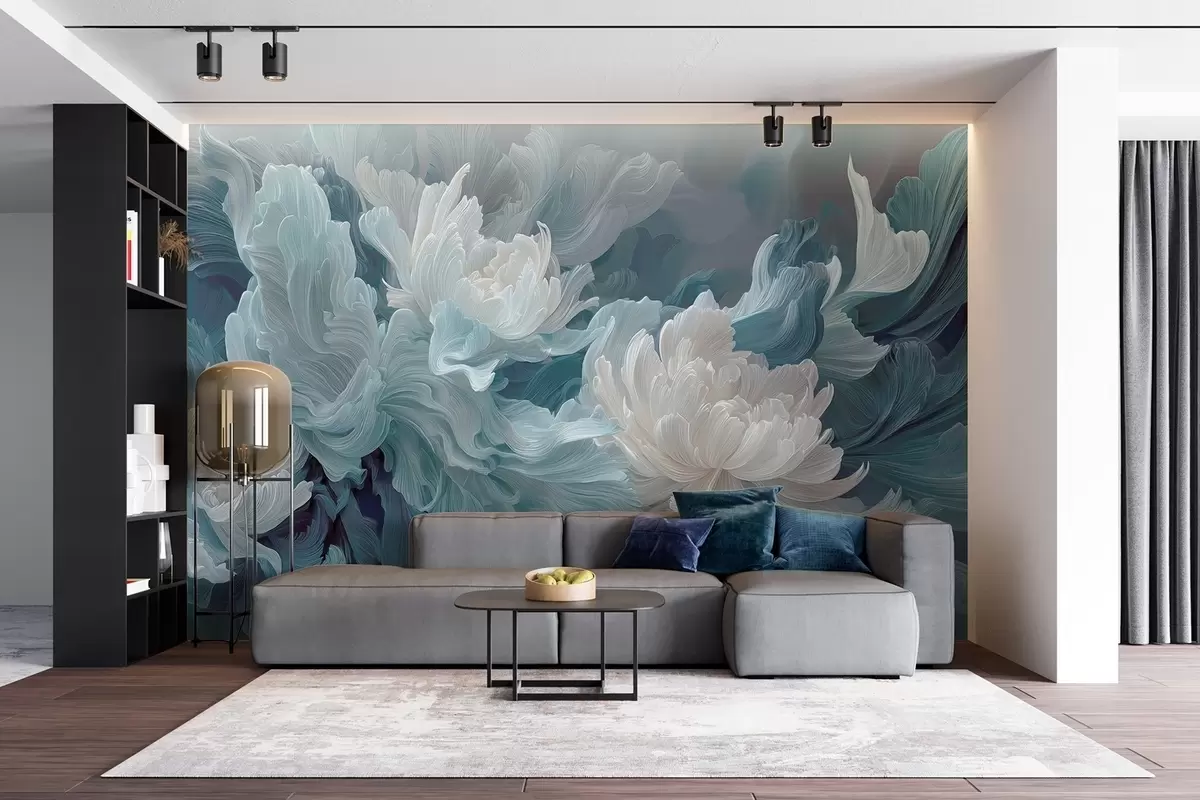 Fototapet Abstrakte blomster i blå og turkise nuancer Nr. w09452