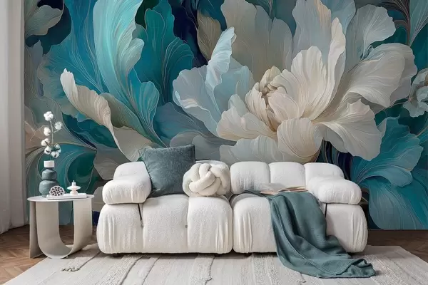 Fototapet Delikat volumetrisk pæon i en kølig farvepalet Nr. w09456