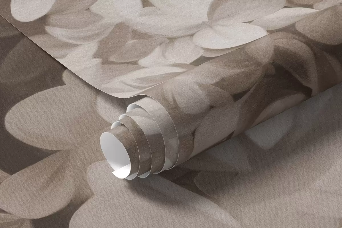 Fototapet Tekstureret sepia-maleri, der imiterer hortensiablomster med store blade, abstrakt og mørk baggrund Nr. w09465