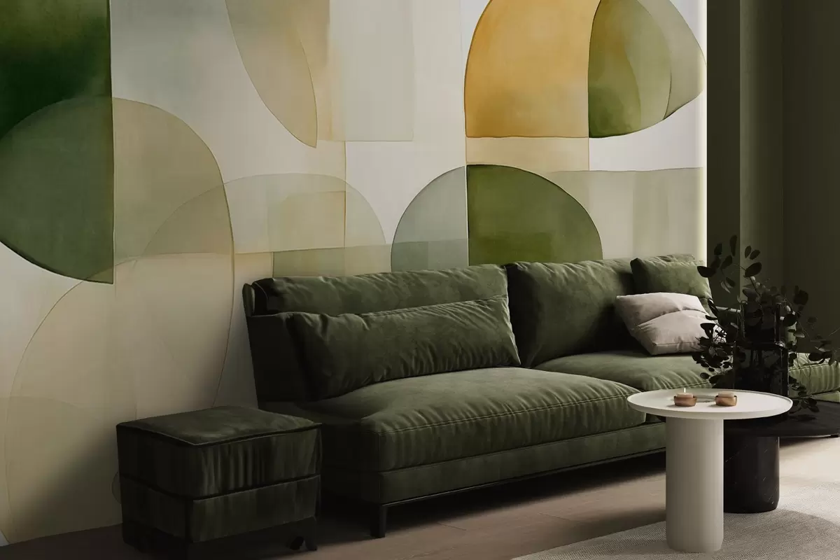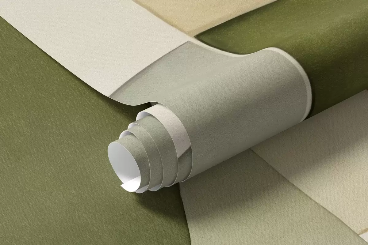 Fototapet Abstrakte teksturerede former i grønne og gule nuancer, dæmpede toner, minimalistisk komposition, neutral baggrund Nr. w09467