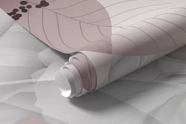 Fototapet Lyserøde blomster og grå blade, botanisk blomsterbaggrund, elegant design, bløde farver, lette, delikate detaljer Nr. w09497