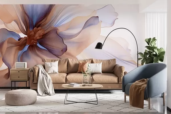 Fototapet Detaljeret stor blomst med hvid, blå og brun kronblade på hvid baggrund Nr. w09498