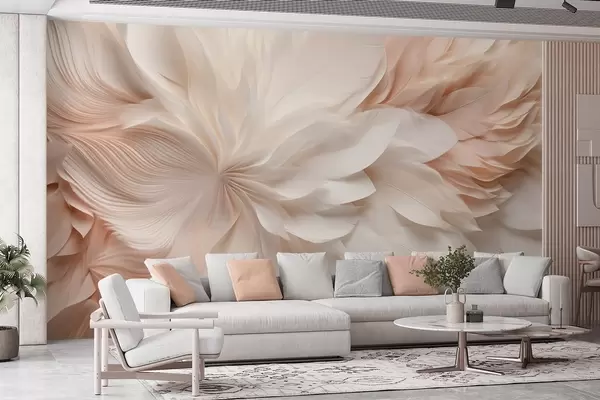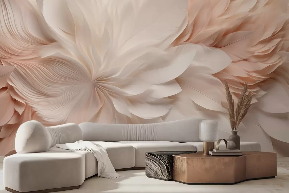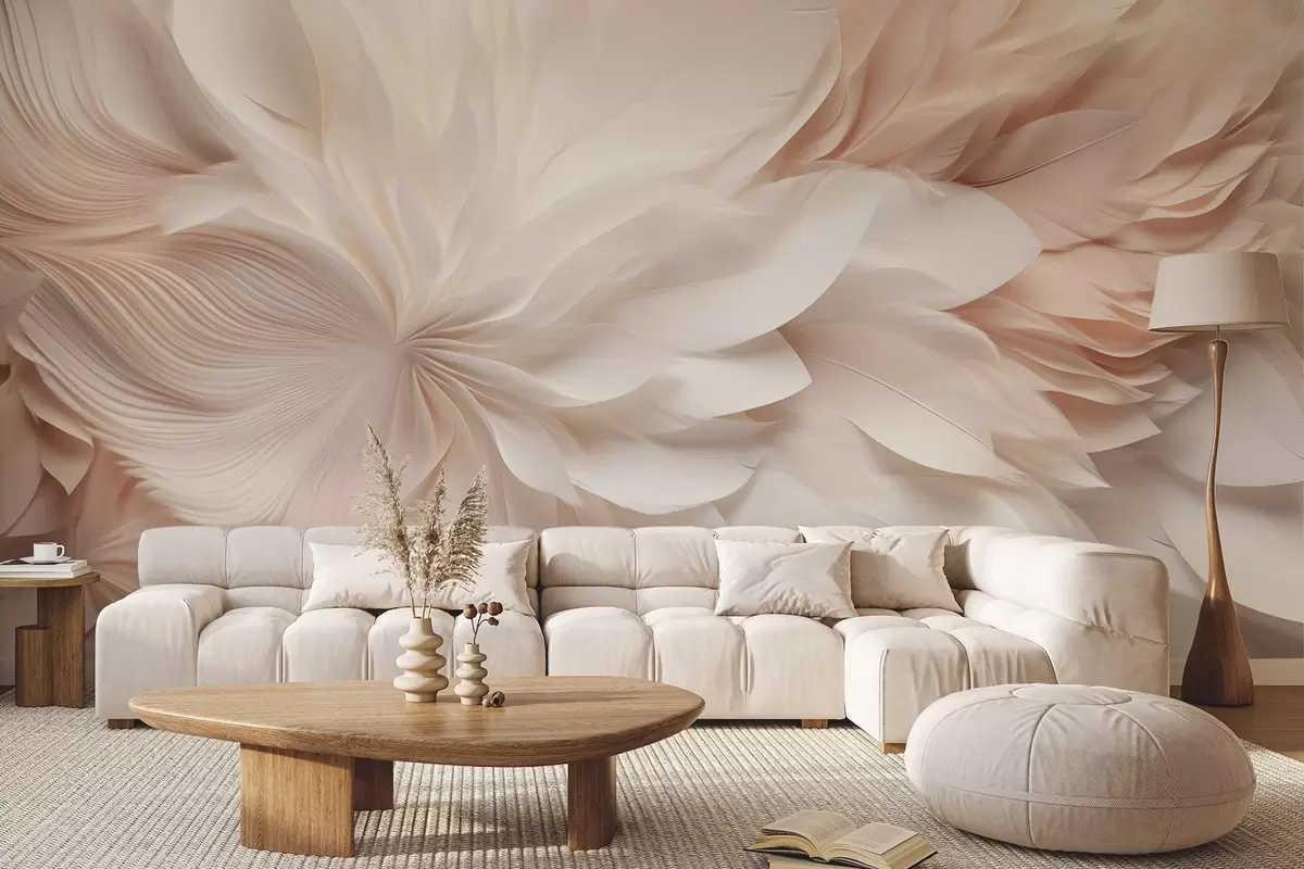 fototapeter Delikate abstrakte fjer i bevægelse i beige og cremefarvede nuancer w09509