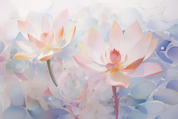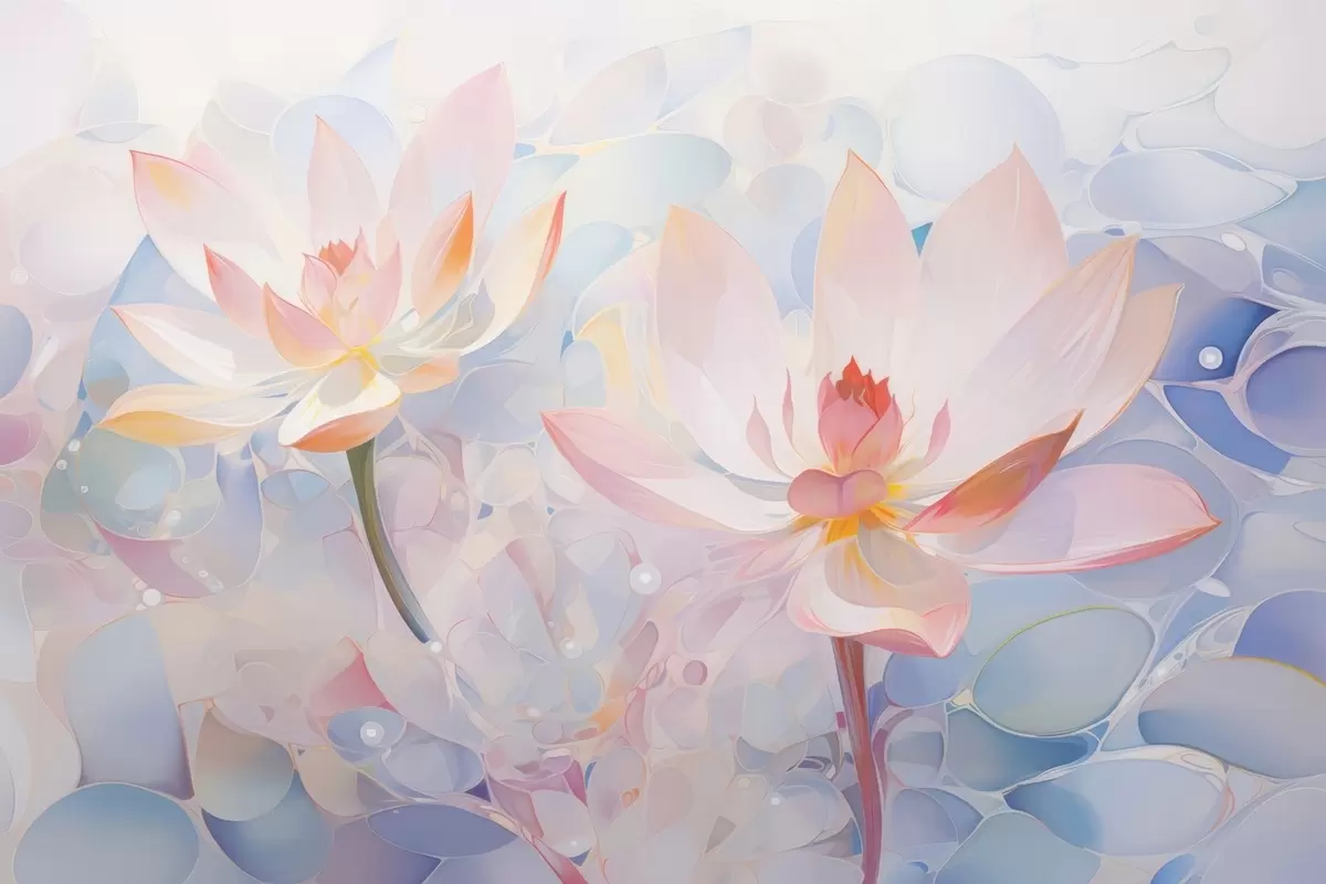 Fototapet Bløde pastelfarvede lotusblomster i akvarelstil Nr. w09512