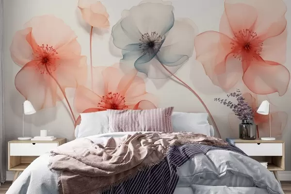 Fototapet Gennemsigtige blomster i røde og blå nuancer Nr. w09515
