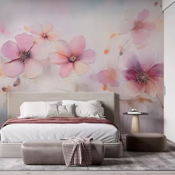 Fototapet Gren med lyserøde blomster i akvarelstil Nr. w09522