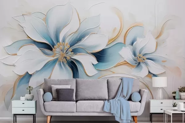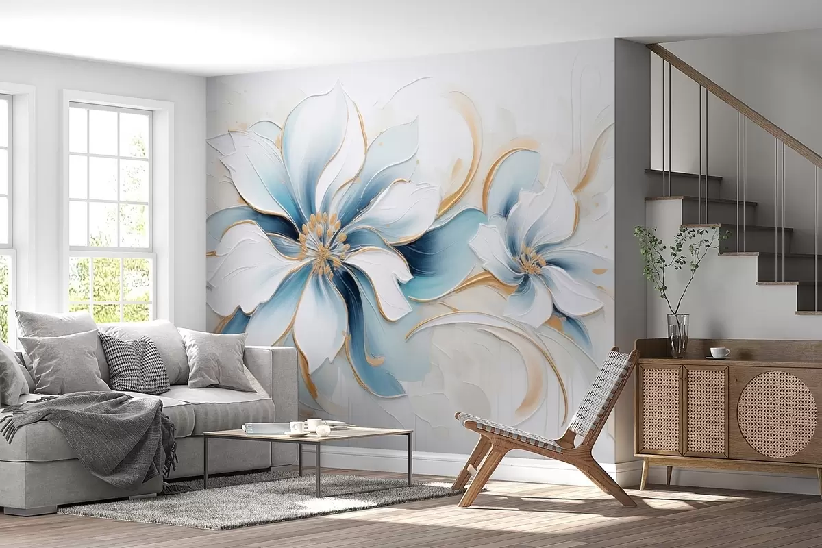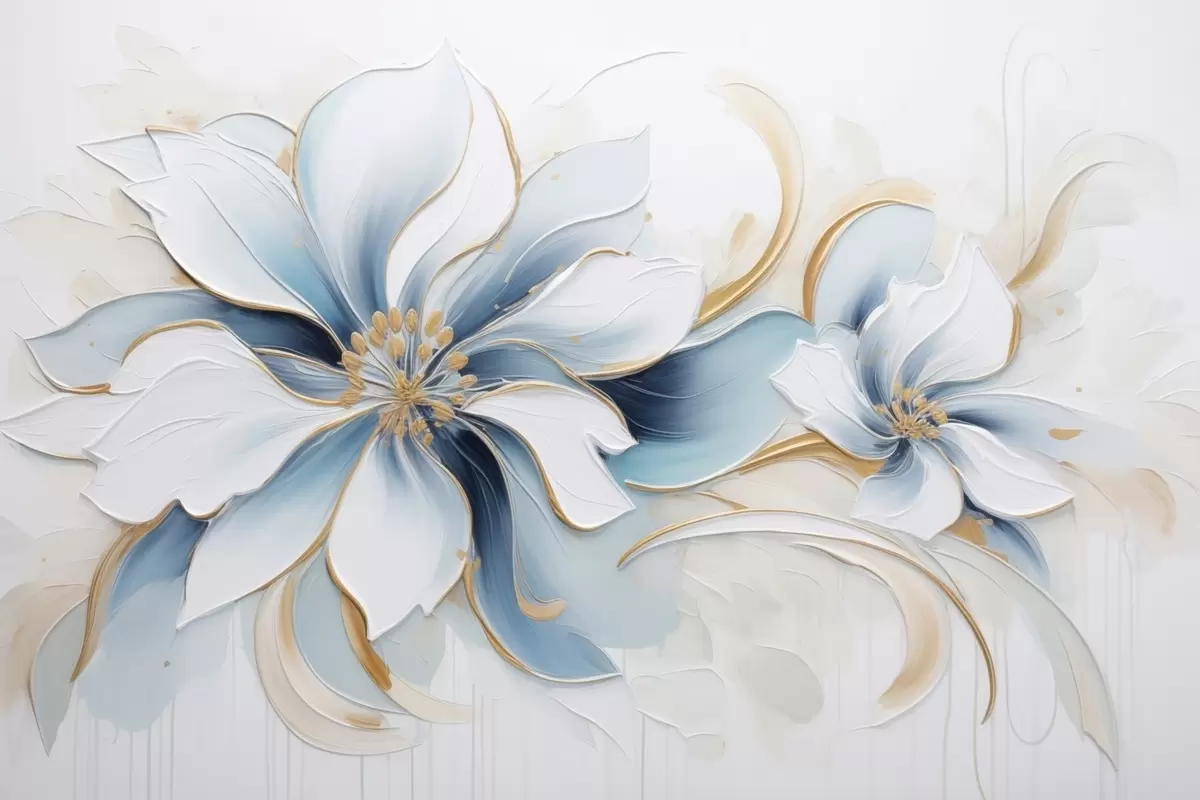 Fototapet Maleriagtig abstraktion med blå blomster i oliemaleri-stil Nr. w09524